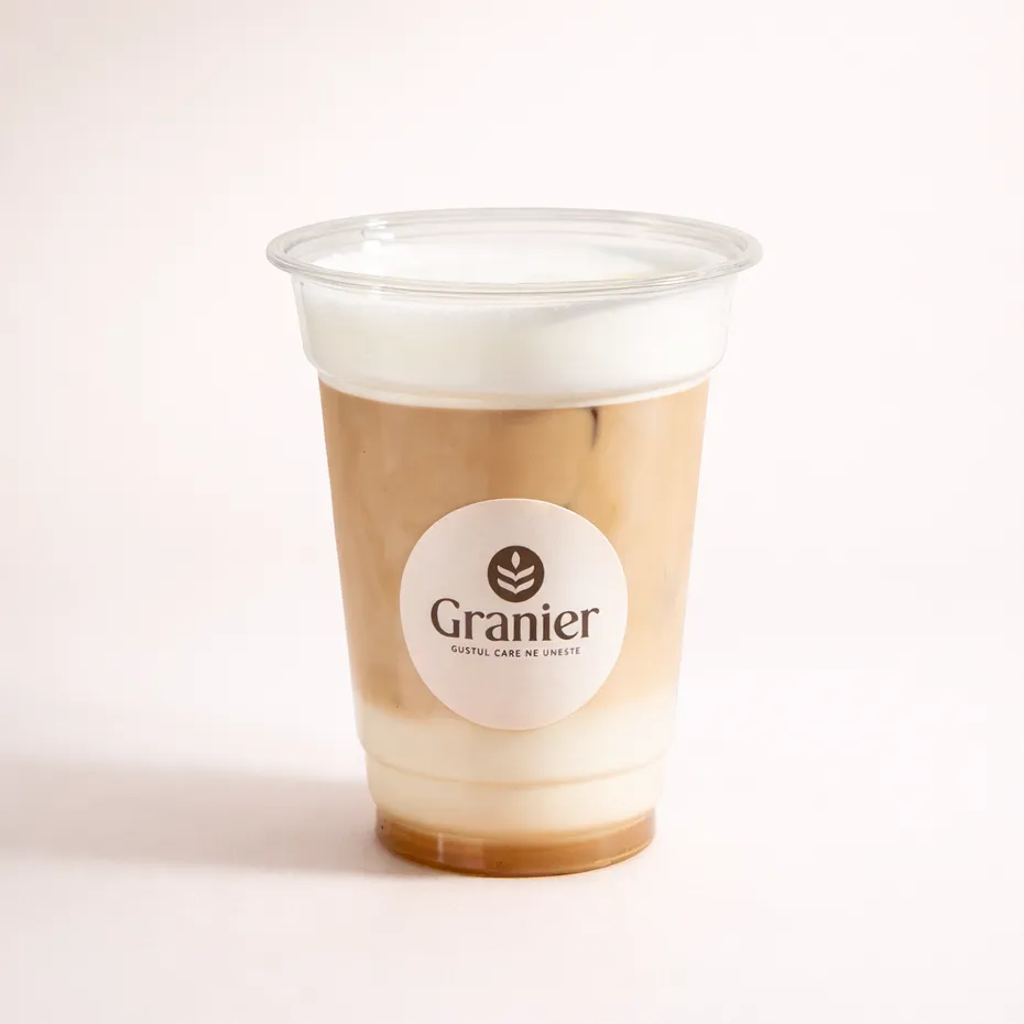 Băutură pe bază de cafea cu sirop, lapte și gheață.